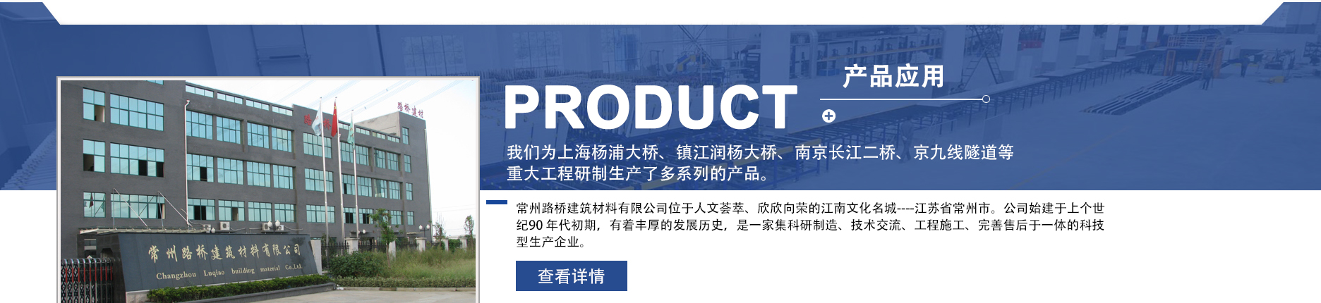 常州路橋建筑材料有限公司位于人文薈萃、欣欣向榮的江南文化名城----江蘇省常州市。公司始建于上個(gè)世紀(jì)90 年代初期,有著豐厚的發(fā)展歷史,是一家集科研制造、技術(shù)交流、工程施工、完善售后于一體的科技型生產(chǎn)企業(yè)。